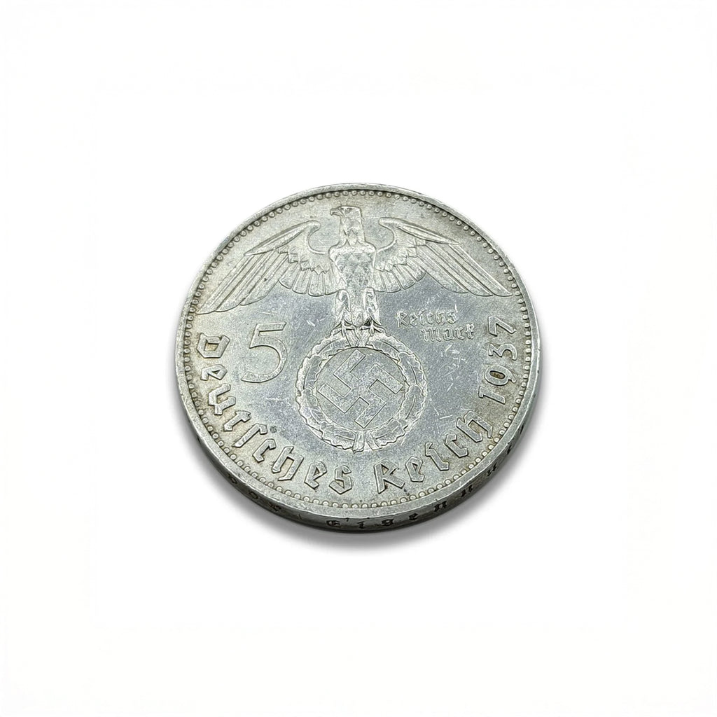 Discover this exceptional authentic 5 Reichsmark silver coin, the highest denomination in silver of the Third Reich, minted between 1936-1939. This historic coin represents the heyday of pre-war German numismatics, offering a direct connection to the events that preceded the most devastating conflict of the 20th century. A museum-quality numismatic gem in your hands, testimony to a time that changed the world forever.