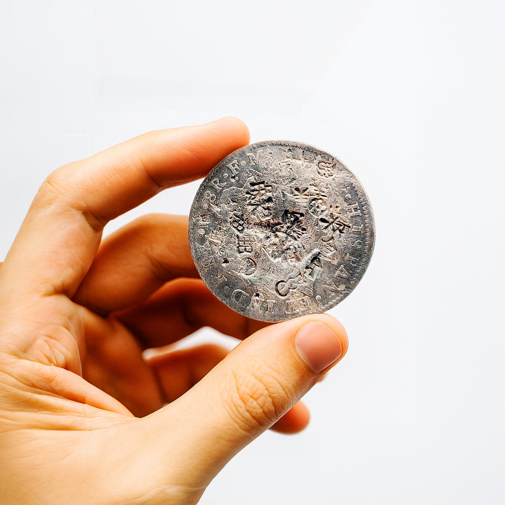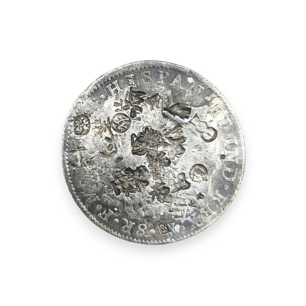 Moneda de 8 Reales españoles con Resellos Asiáticos – El Comercio de Occidente y Oriente | Certificada