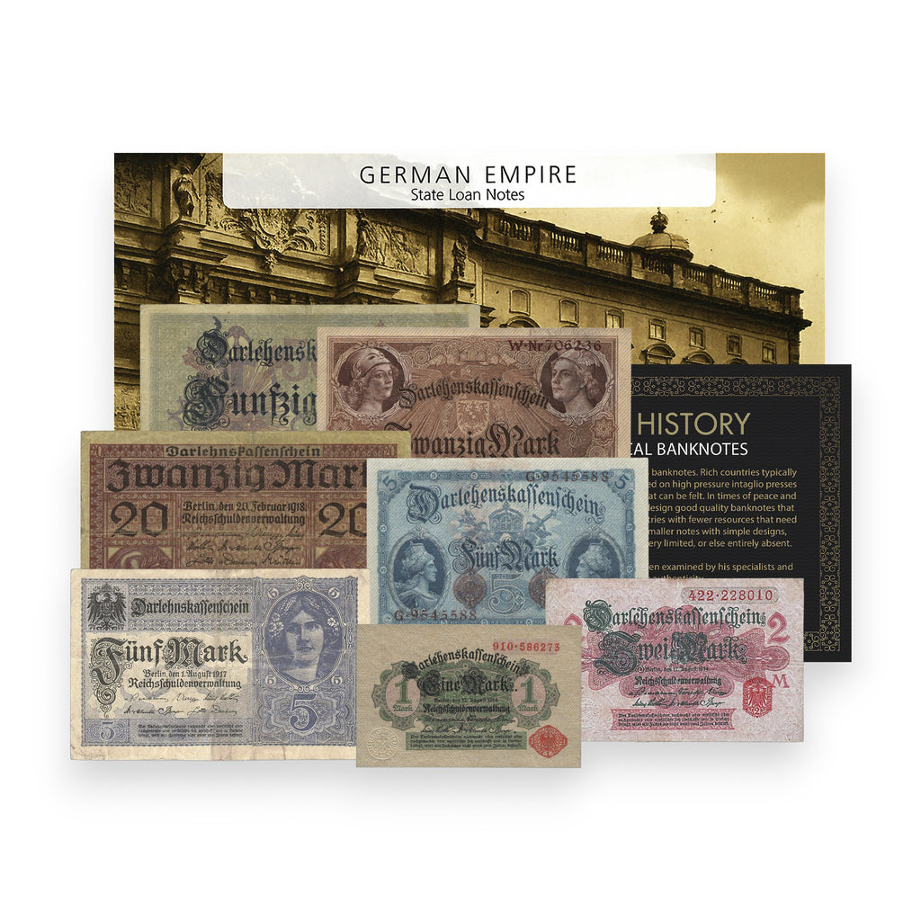 Collezione completa prima serie Banconote di prestito statale tedesco | Originali di guerra | Certificate ed esclusive