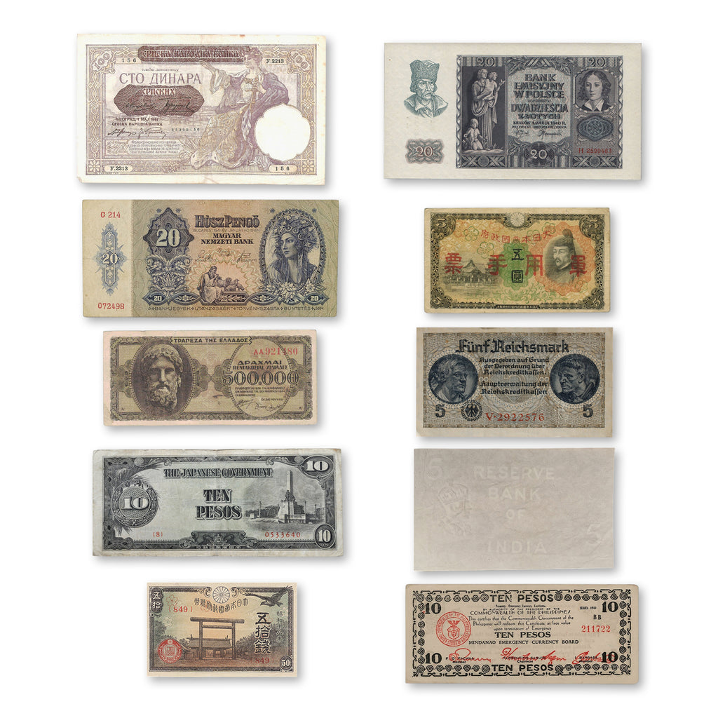 10 billetes auténticos de la Segunda Guerra Mundial - Aliados & Eje (1939-1945) | Certificados