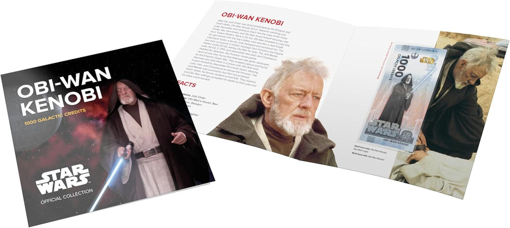 Conecta con el universo Star Wars a través de este billete oficial de colección dedicado a Obi-Wan Kenobi, uno de los personajes más influyentes y respetados de la trilogía original. Esta pieza forma parte de la serie oficial de billetes Star Wars, creada como homenaje a los héroes que dieron forma al equilibrio de la Fuerza y marcaron generaciones de fans en todo el mundo.